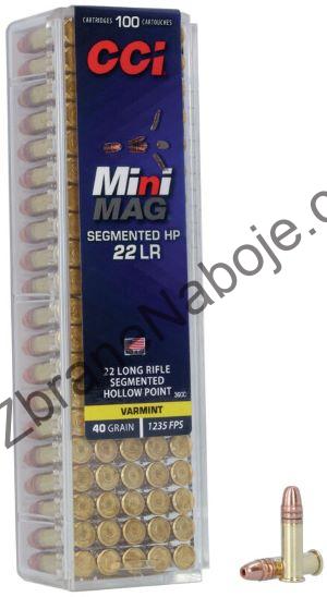 Vysoce výkonné malorážkové náboje CCI Mini-Mag Segmented, s extrémní přesností a vysokou úsťovou rychlostí střely 376 m/s (1235 FPS). Náboje jsou určené pro zbraně ráže .22 LR, jsou osazeny segmentovanou poměděno střelou SHP (Segmented Hollow Point) s expanzní dutinou, která se při kontaktu s cílem rozdělí na tři rovnoměrné části, které zajistí rychlý a spolehlivý zásah lovené kořisti.