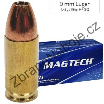 9 mm Luger Magtech JHP 7,45g/115gr - 9Cskladem 150 ks8,90 Kč/ ks7,36 Kč bez DPH