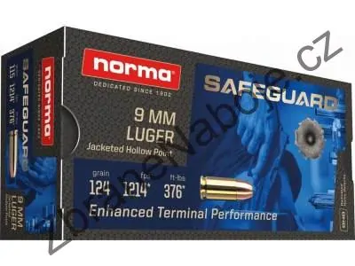 9mm Luger Norma Safeguard, JHP, 8g/124grskladem 350 ks10 Kč/ ks8,26 Kč bez DPH