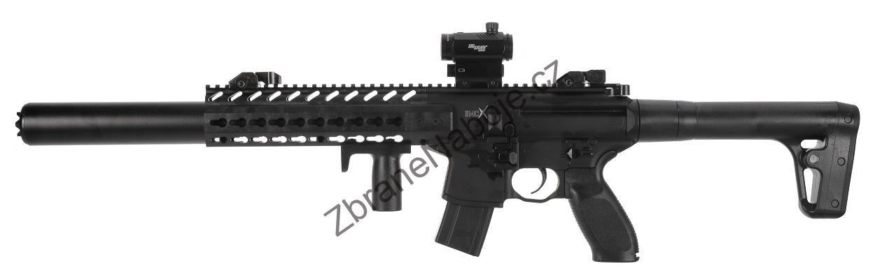 Jde o celokovovou vzduchovou pušku světoznámého výrobce ostrých zbraní SIG SAUER. Puška má drážkovanou hlaveň pro větší přesnost, 30 ranný zásobník na diabolky a funguje v režimu SEMI-AUTO. Stačí tedy natáhnout před prvním výstřelem a potom už jenom mačkáte spoušť dokud není zásobník prázdný. K míření je možné použít otevřená sklopná miřidla, nebo osazený kolimátor s nímž je zamíření na cíl intuitivní a velmi rychlé. Vzduchovka je poháněna jednorázovou 88g CO2 bombičkou, na kterou je možno vystřelit cca 180 ran. Je to jedna z nejlépe vydařených kopií ostrých zbraní na diabolky.