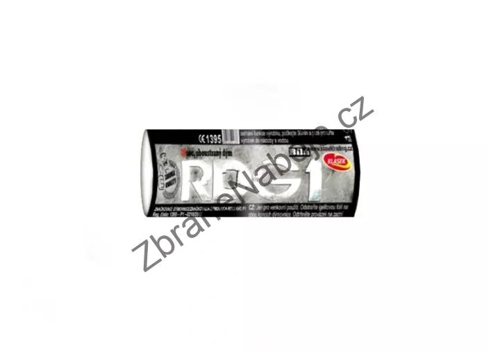 Bílý hustý dým se uvolňuje po dobu 40 sekund. Dým vycházi z obou stran dýmovnice.
