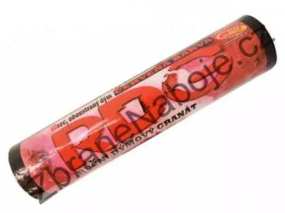 Červený hustý dým se uvolňuje po dobu 60 sekund. Dým vycházi z obou stran dýmovnice.