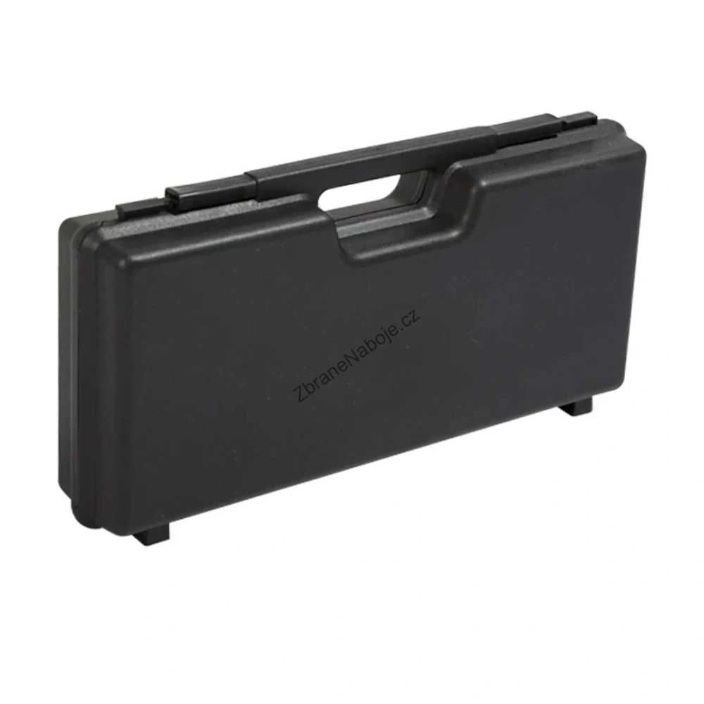 Prodloužené plastové panty s kovovým středem. Posuvné, masivní zavírání kufříku s molitanouvou výplní žraločími zuby zajistí bezpečnou přepravu zbraně.
