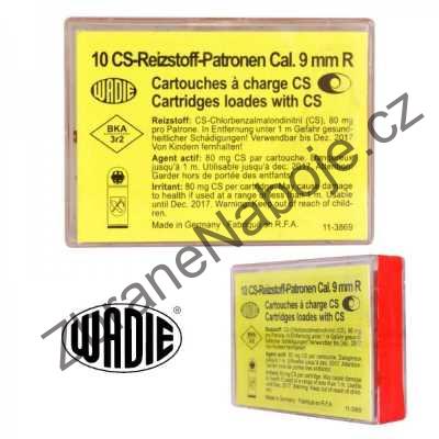 Dráždivý slzotvorný CS náboj pro revolvery cal. 9 mm od německé společnosti Wadie, způsobuje pocity pálení, rdoušení, otoky.
