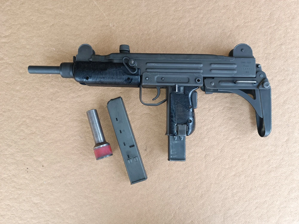 Upravená firmou firmou Zelený sport z Izraelského samopalu ráže 9mm Luger na samonabíjecí pušku. Původní povrchová úprava.